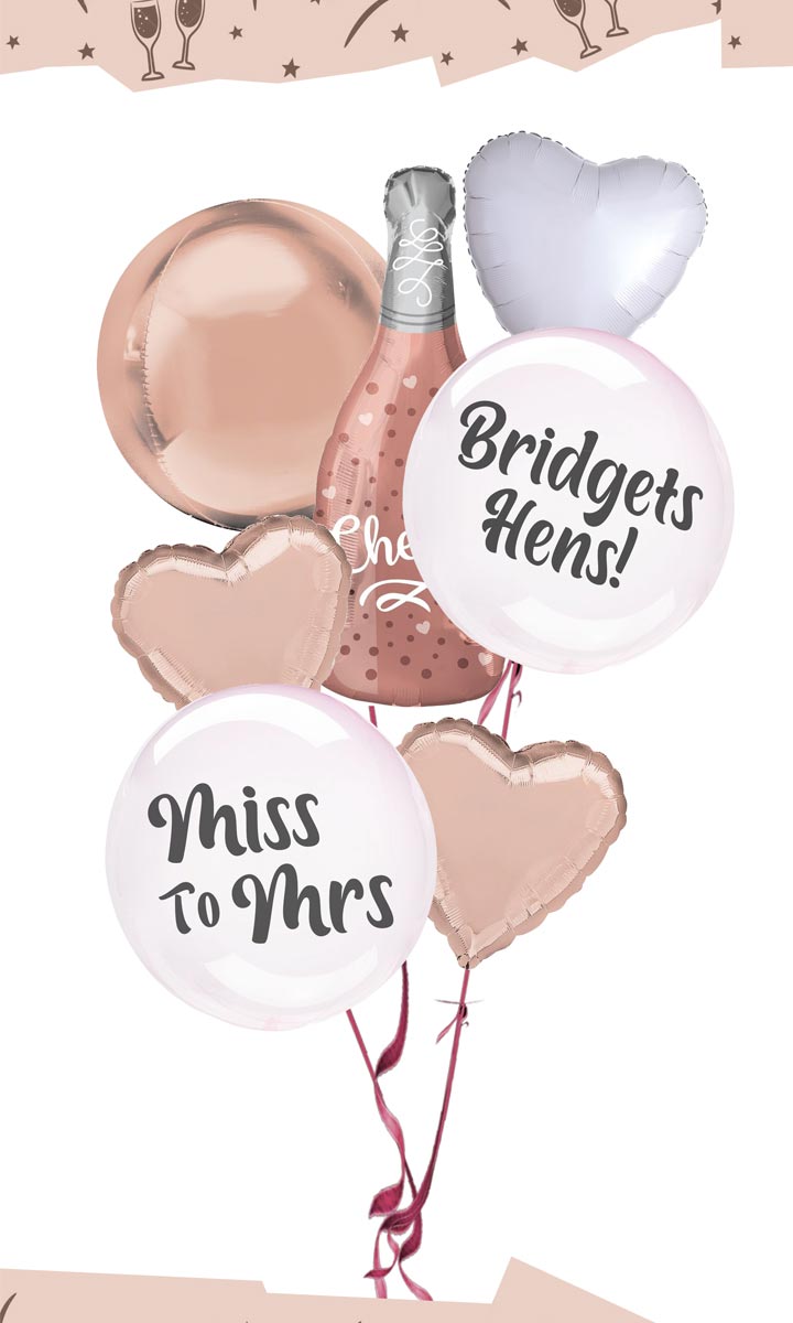 The perfect celebratory gift for your bride to be. Whether your going low key, casual or a wild night out! This bouquet is ideal for any occasion. Personalise the 2 large round bubble balloons with your own custom message.